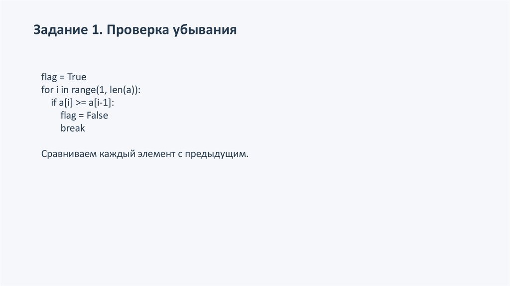 Задание 1. Проверка убыванияflag = True