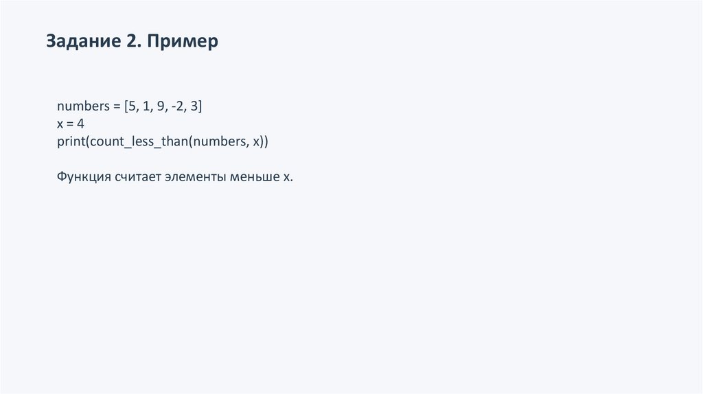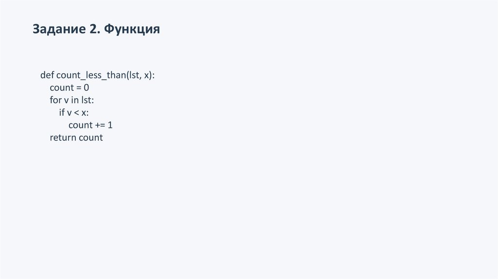 Задание 2. Функцияdef count_less_than(lst, x):