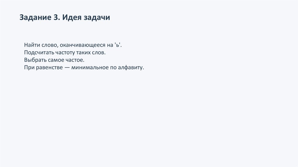Задание 3. Идея задачиНайти слово, оканчивающееся на 'ь'.