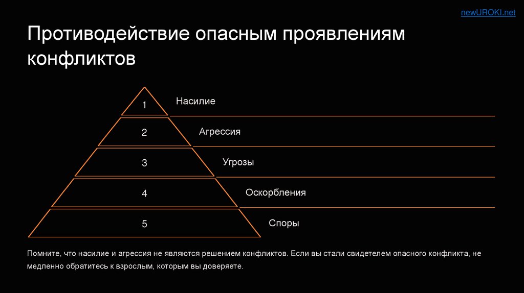 Помните, что насилие и агрессия не являются решением конфликтов. Если вы стали свидетелем опасного конфликта, не