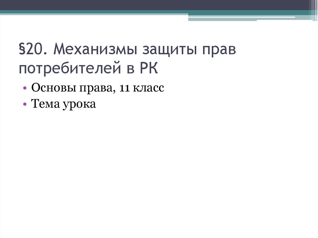 1. §20. Механизмы защиты прав потребителей в РК