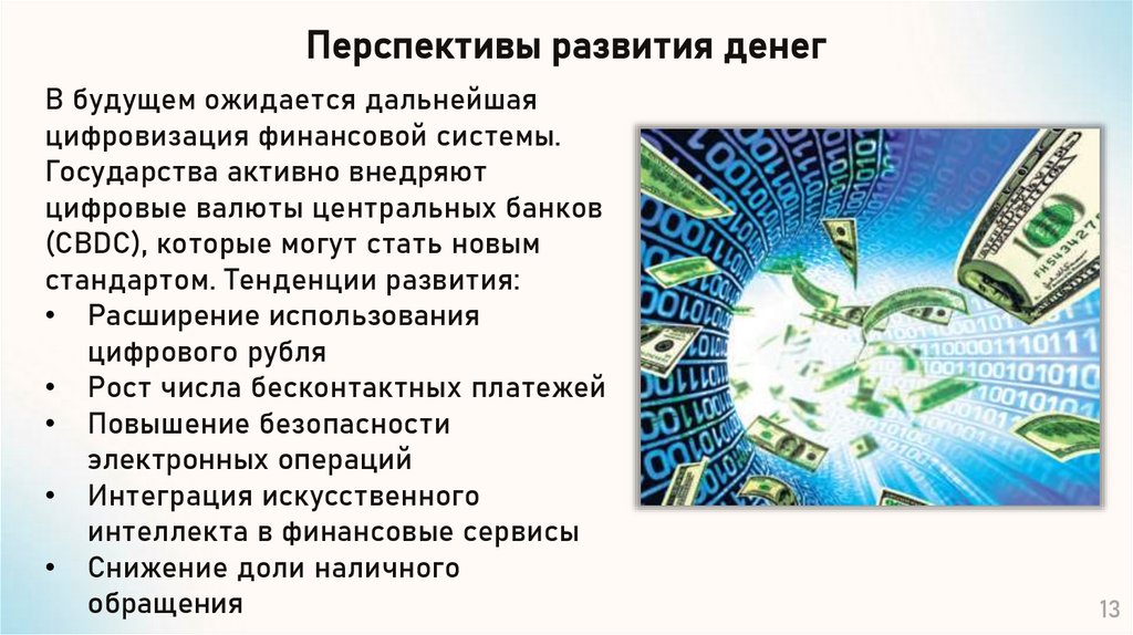 Перспективы развития денегВ будущем ожидается дальнейшая