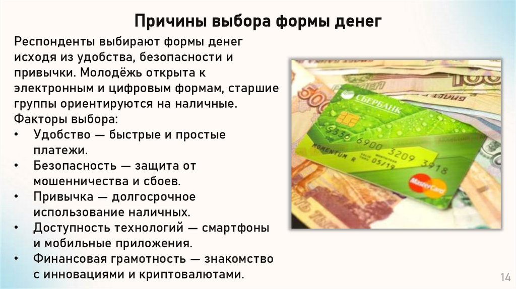 Причины выбора формы денегРеспонденты выбирают формы денег