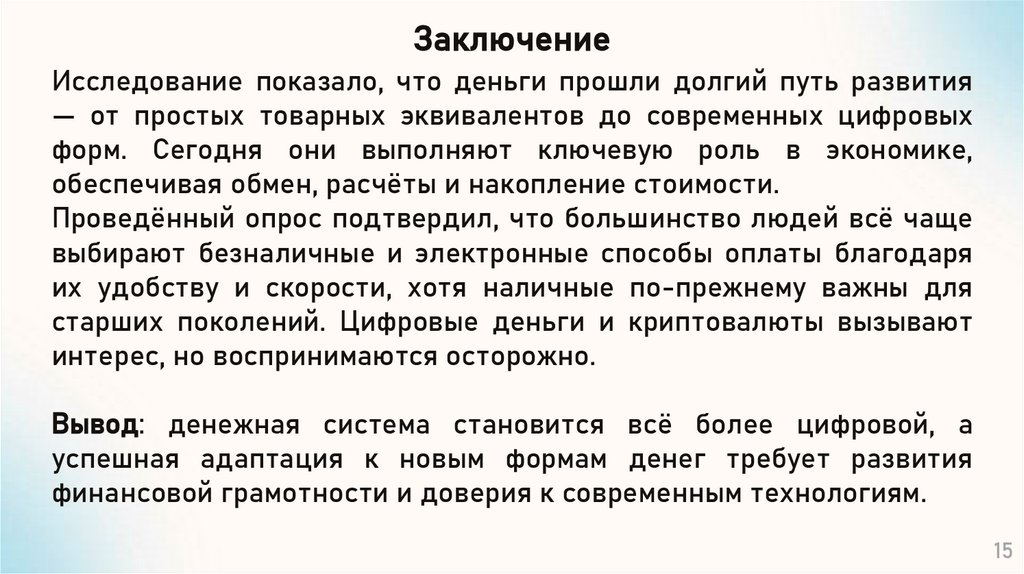 ЗаключениеИсследование показало, что деньги прошли долгий путь развития