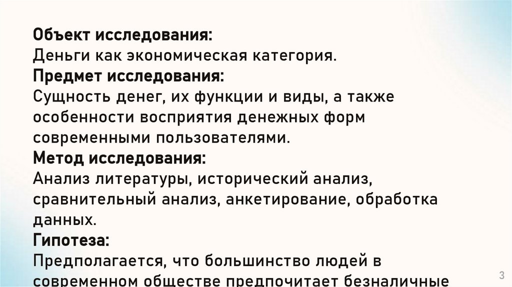 Объект исследования:Деньги как экономическая категория.