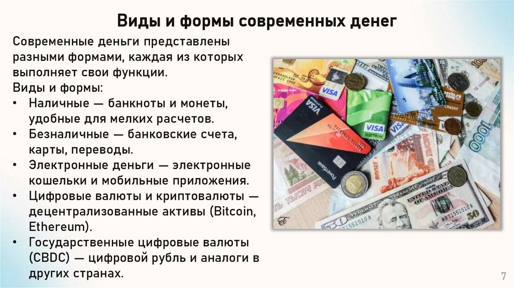 Виды и формы современных денегСовременные деньги представлены