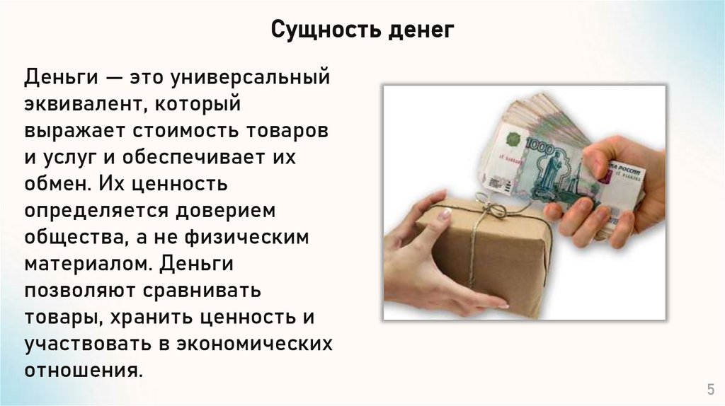 Сущность денегДеньги — это универсальный