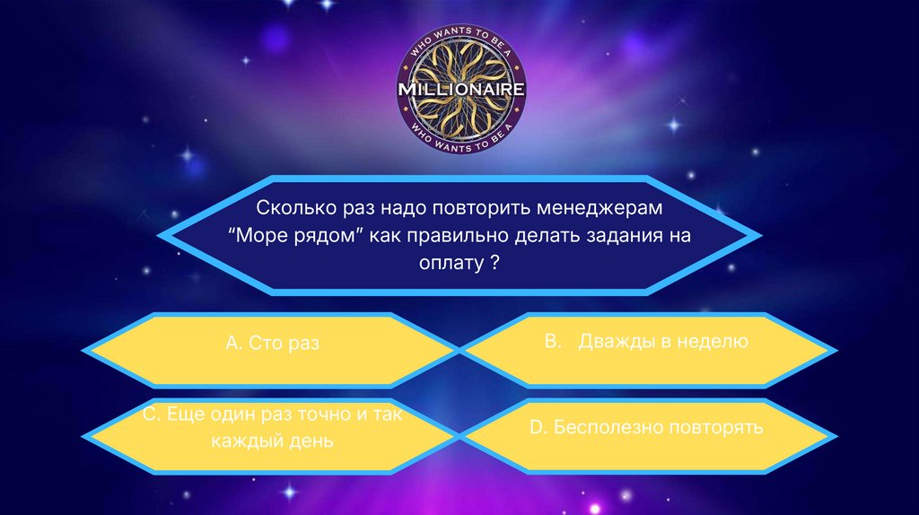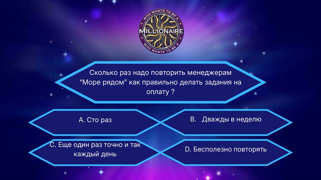 Сколько раз надо повторить менеджерам“Море рядом” как правильно делать задания на
