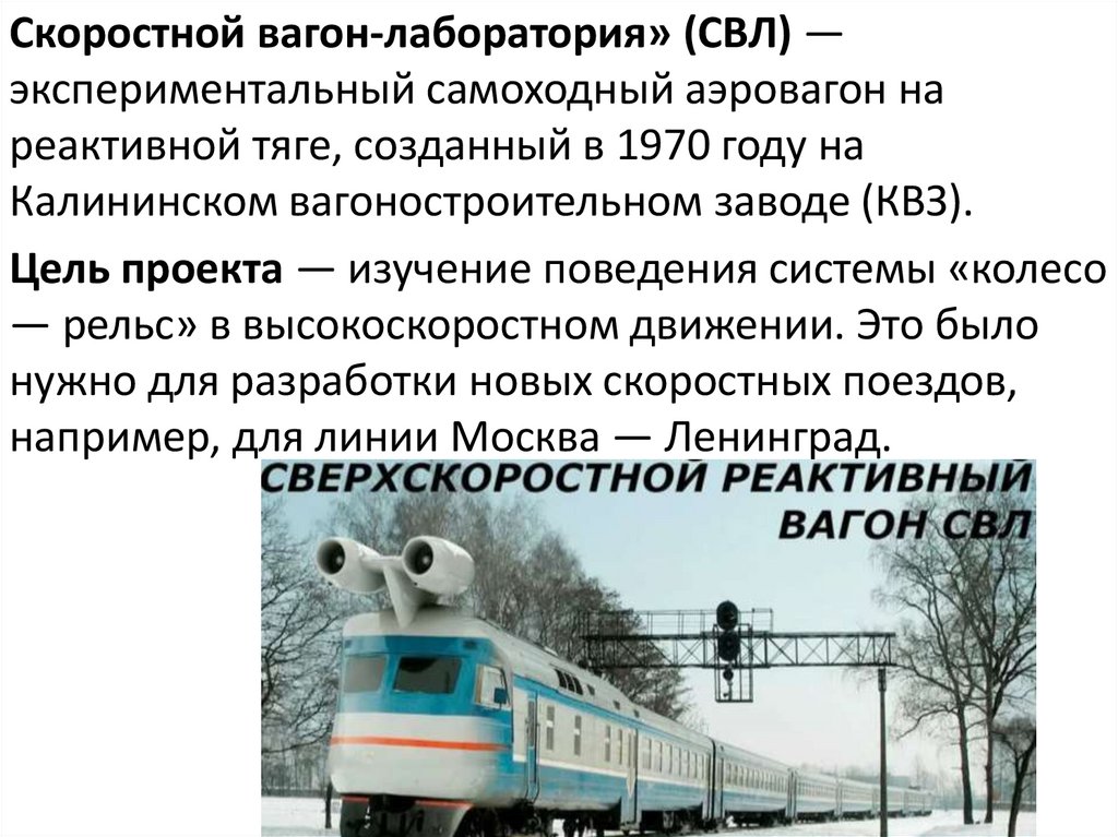 Скоростной вагон-лаборатория» (СВЛ) —экспериментальный самоходный аэровагон на