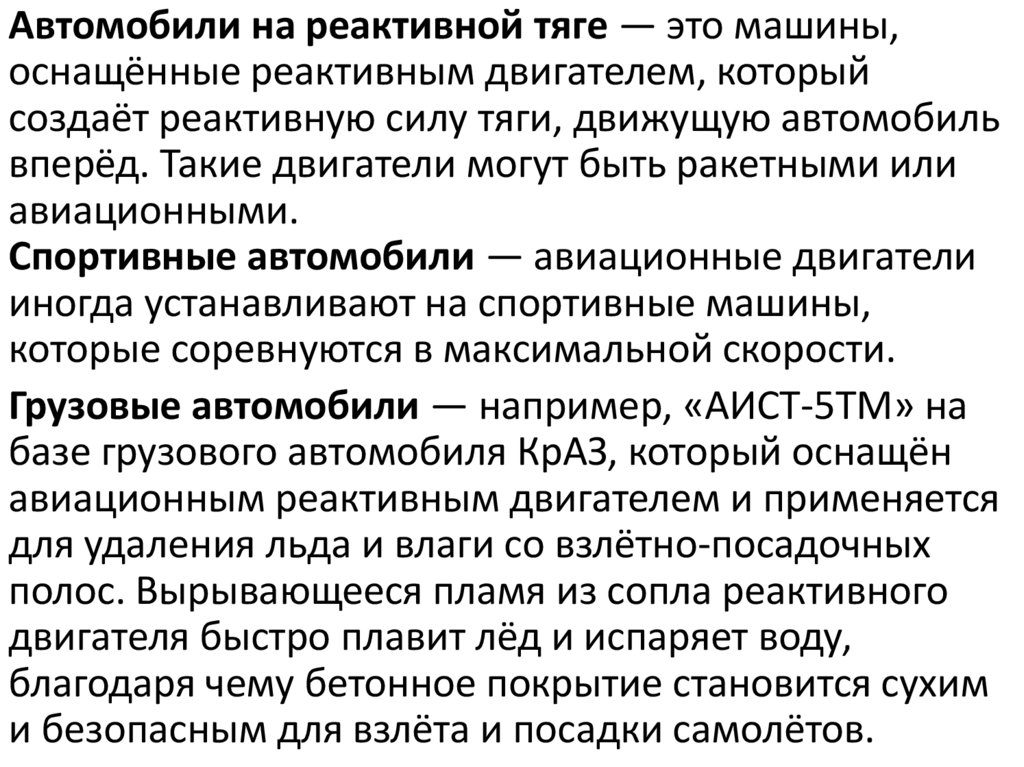 Автомобили на реактивной тяге — это машины,оснащённые реактивным двигателем, который
