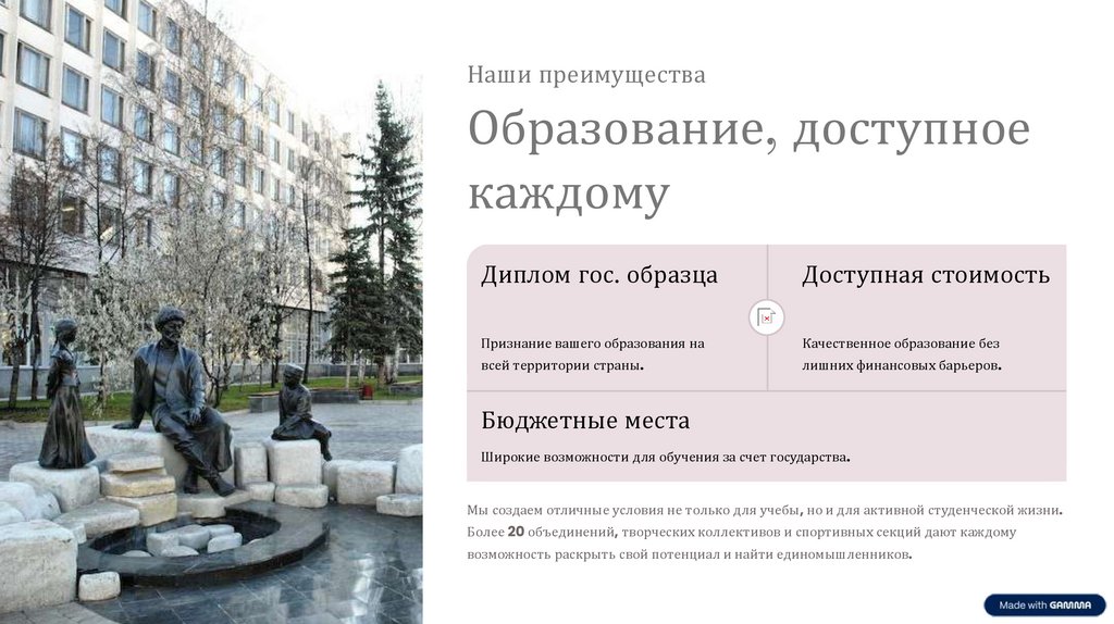 образование доступным для каждого, благодаря большому количеству бюджетных мест и