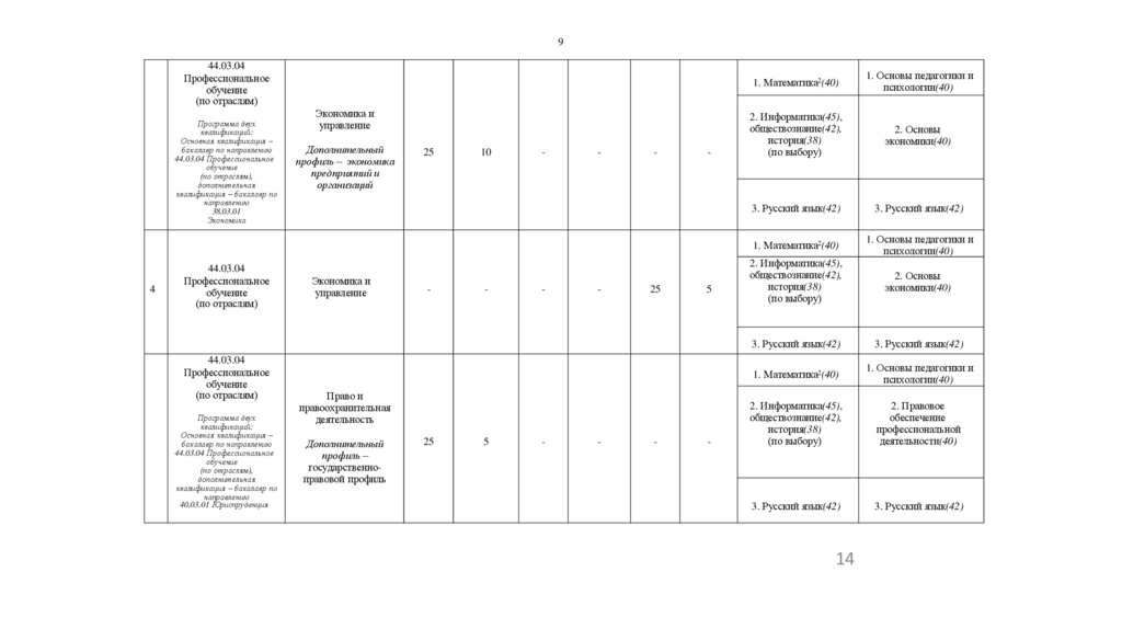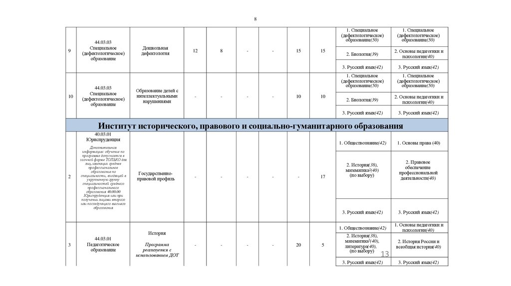 специалистов по воспитательной работе, документоведению, юриспруденции,