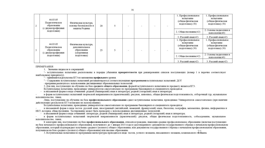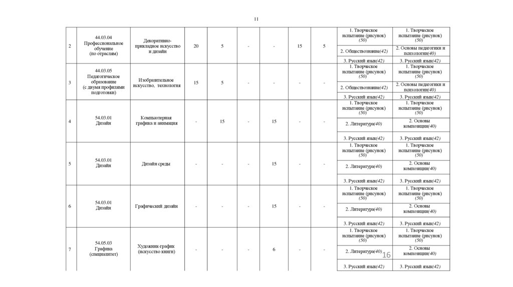 вступительных испытаний на очную