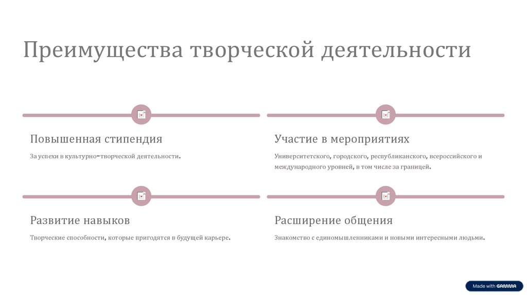 Преимущества творческой деятельностиПовышенная стипендия