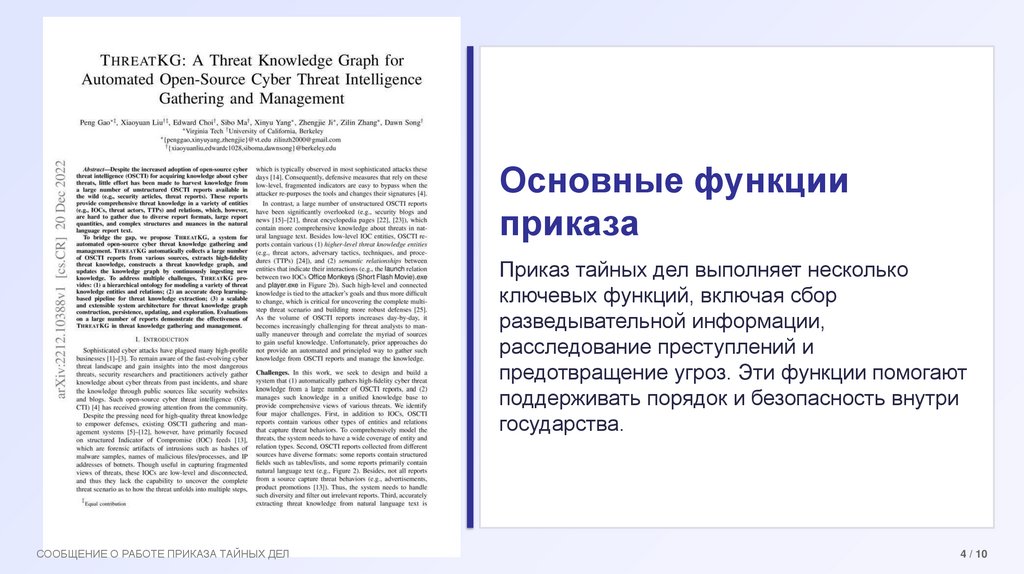 Спасибо за внимание!СООБЩЕНИЕ О РАБОТЕ ПРИКАЗА ТАЙНЫХ ДЕЛ