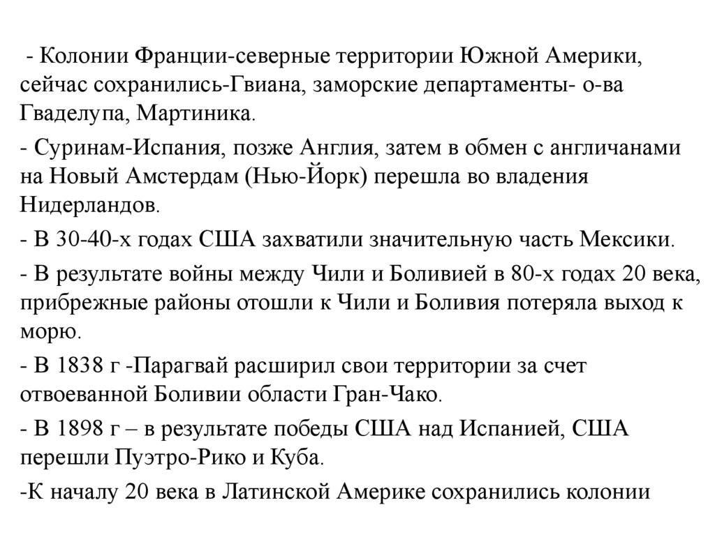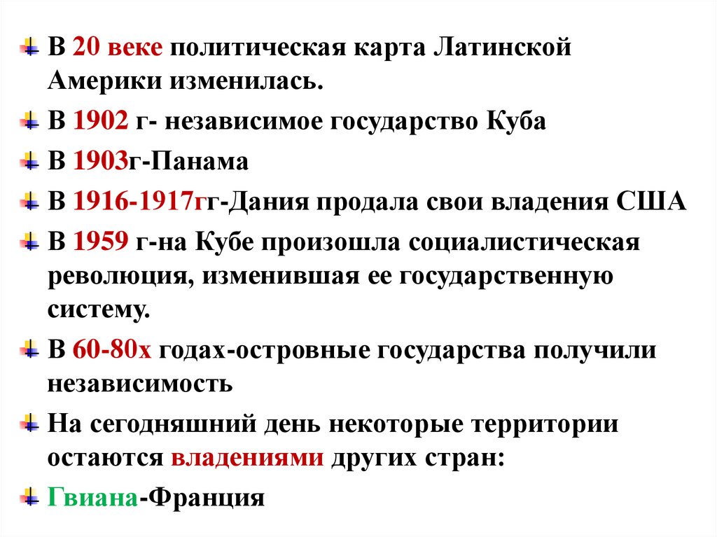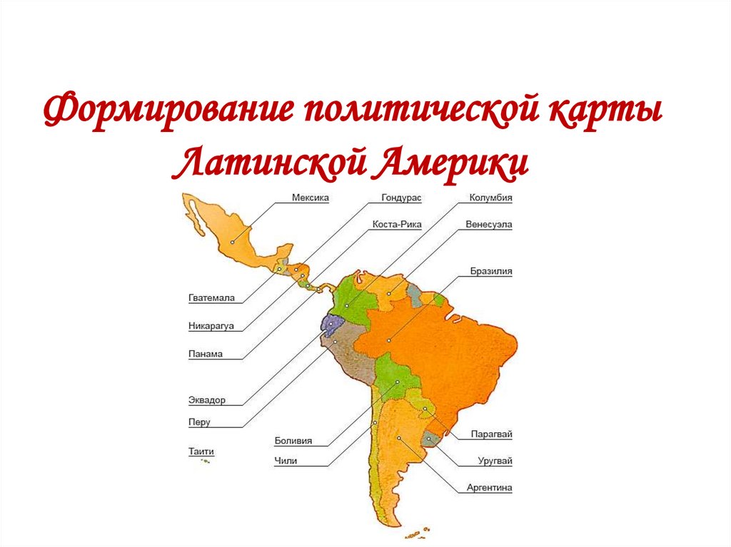 Знать содержание темы «Формирование политической карты стран Латинской Америки»Задание: