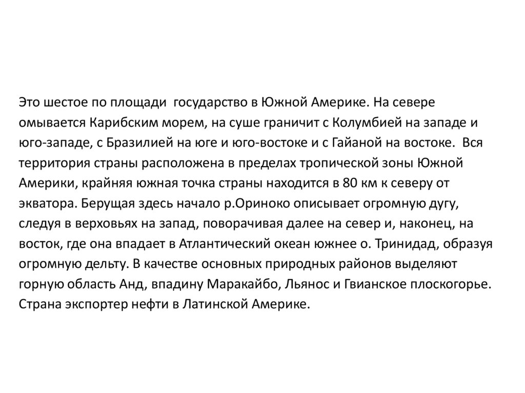 горную область Анд, впадину Маракайбо, Льянос и Гвианское плоскогорье.