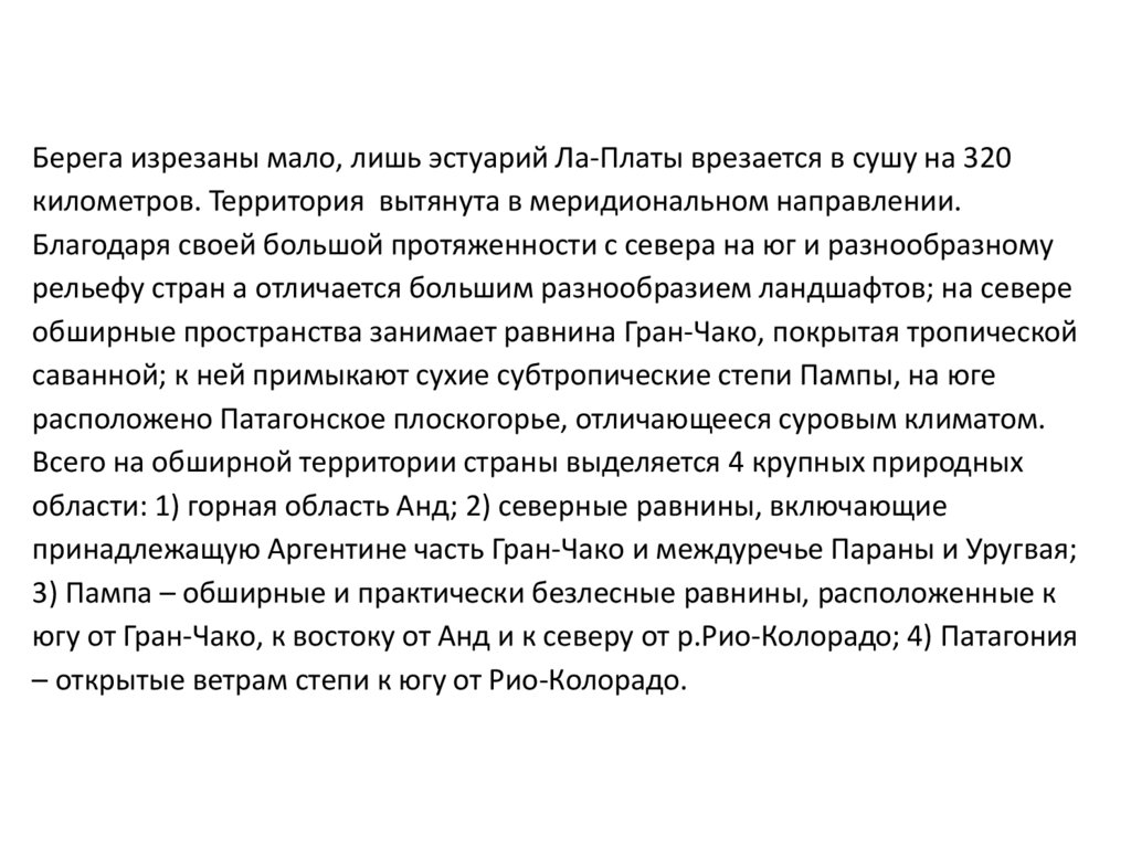 югу от Гран-Чако, к востоку от Анд и к северу от р.Рио-Колорадо; 4) Патагония