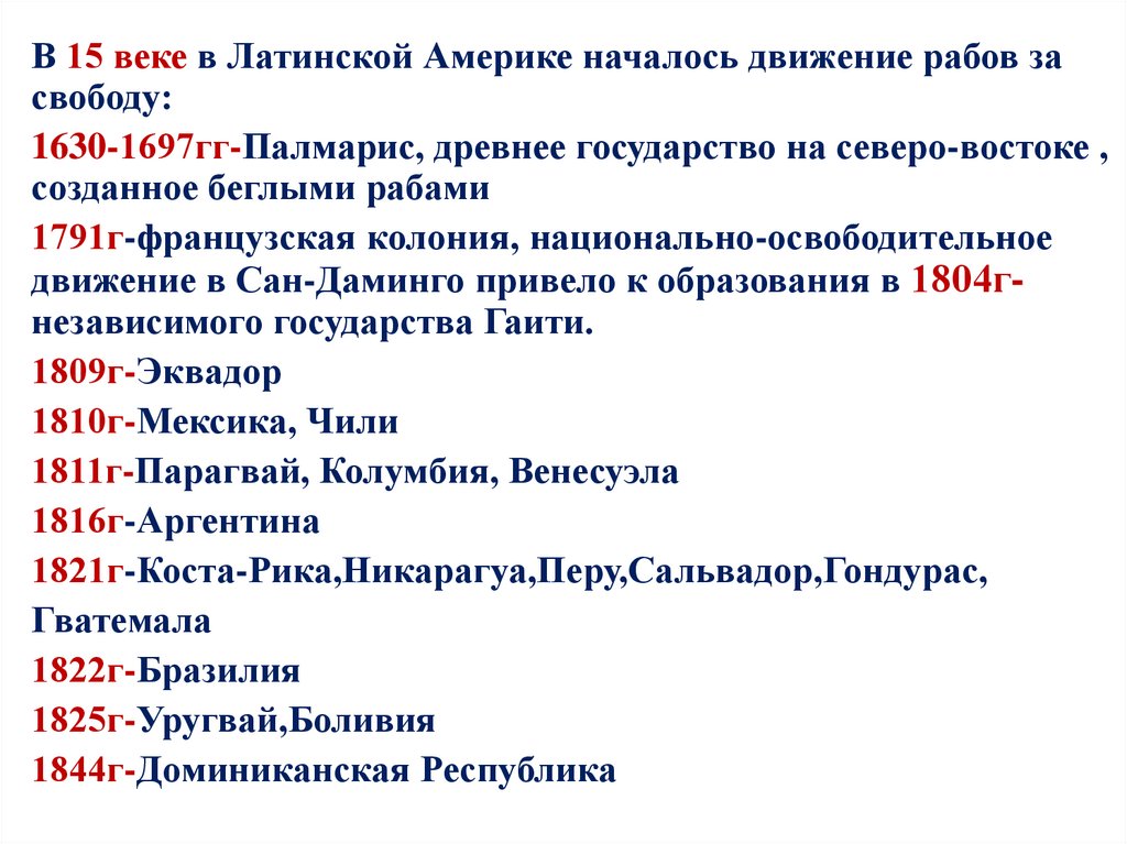 В 15 веке в Латинской Америке началось движение рабов засвободу: