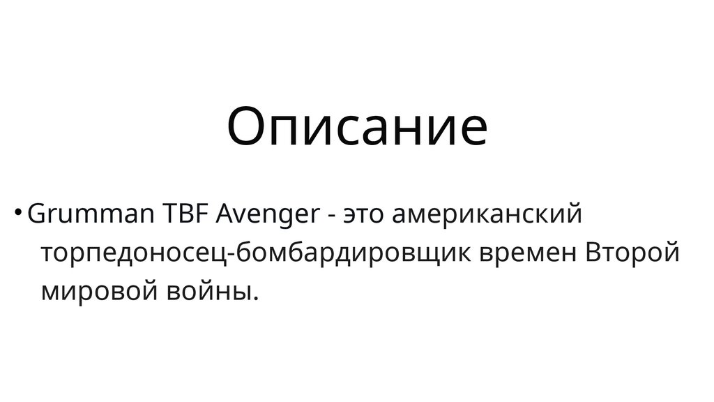 Описание• Grumman TBF Avenger - это американский