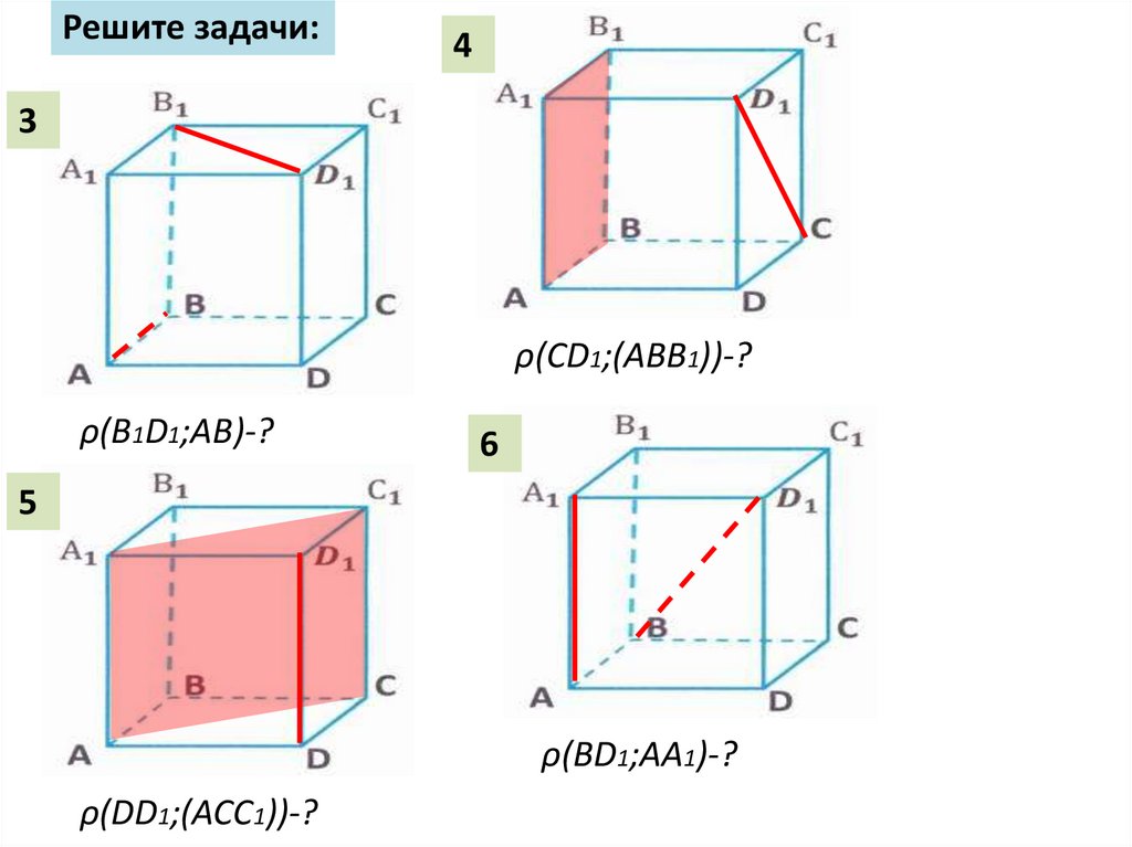 расстояние от прямой АА1 до плоскости (ВDD1). 4) В кубе