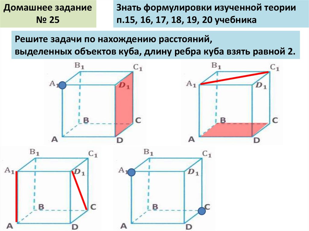 выделенных объектов куба, длину ребра куба взять равной 2.