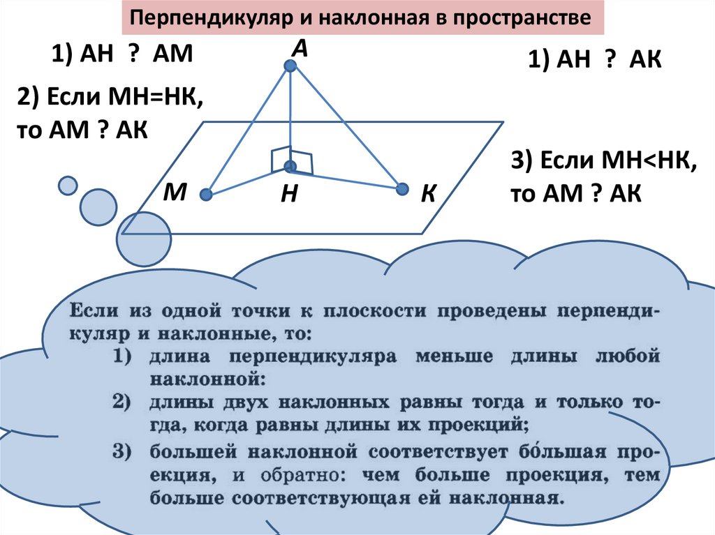 Перпендикуляр и наклонная в пространстве1) АН ? АМ