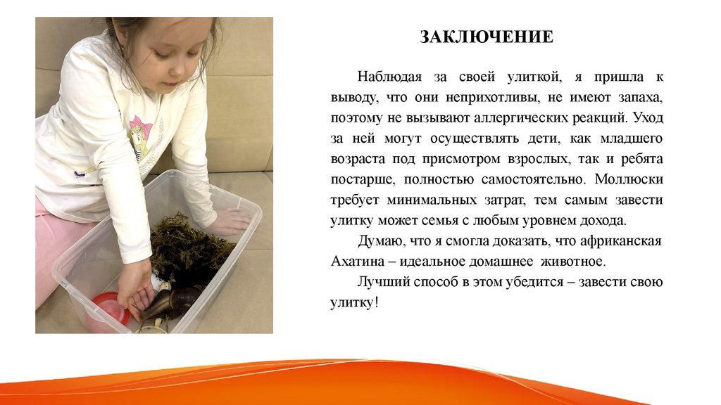 ЗАКЛЮЧЕНИЕНаблюдая за своей улиткой, я пришла к
