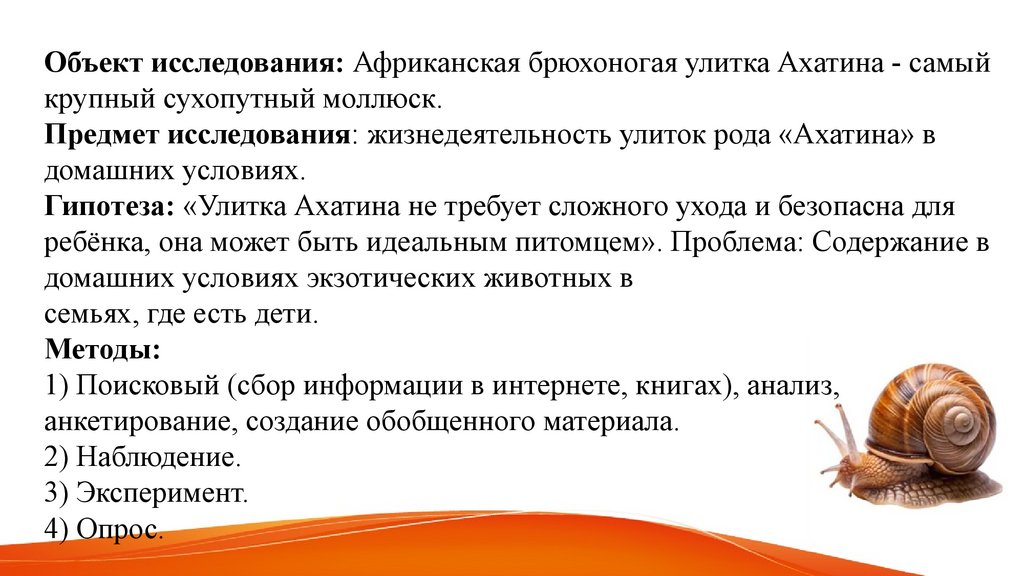 Гипотеза: «Улитка Ахатина не требует сложного ухода и безопасна для