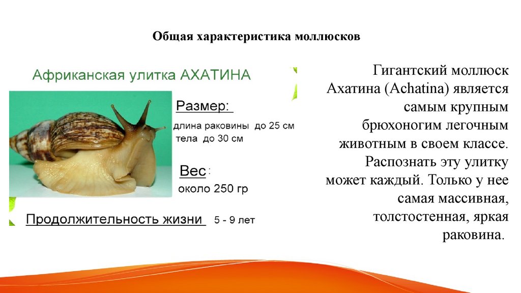 Объект исследования: Африканская брюхоногая улитка Ахатина - самыйкрупный сухопутный моллюск.