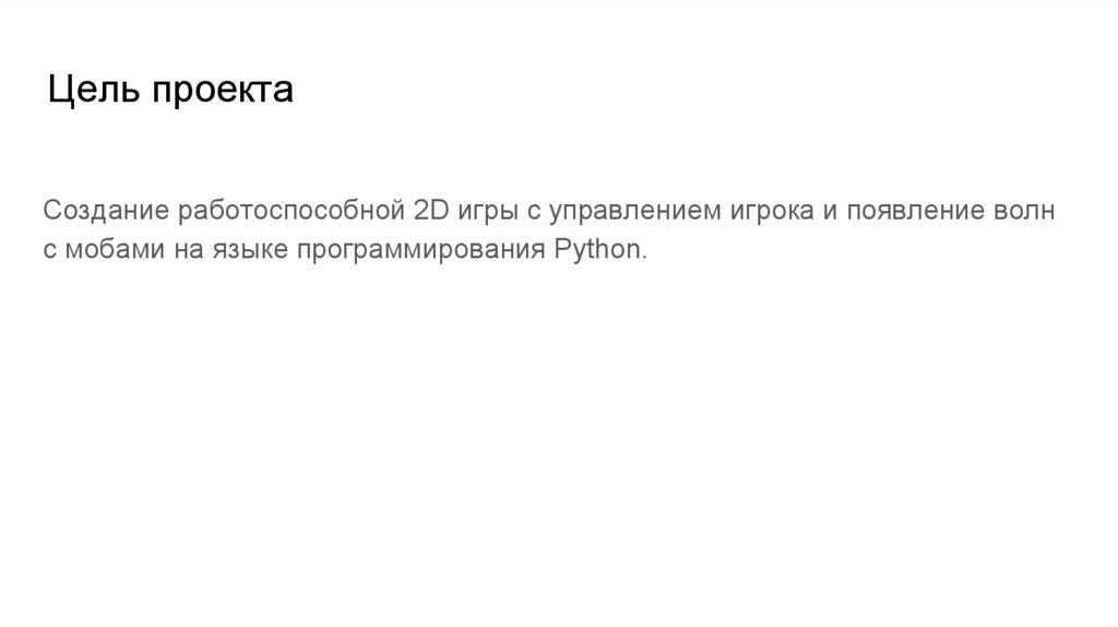 Цель проектаСоздание работоспособной 2D игры c управлением игрока и появление волн