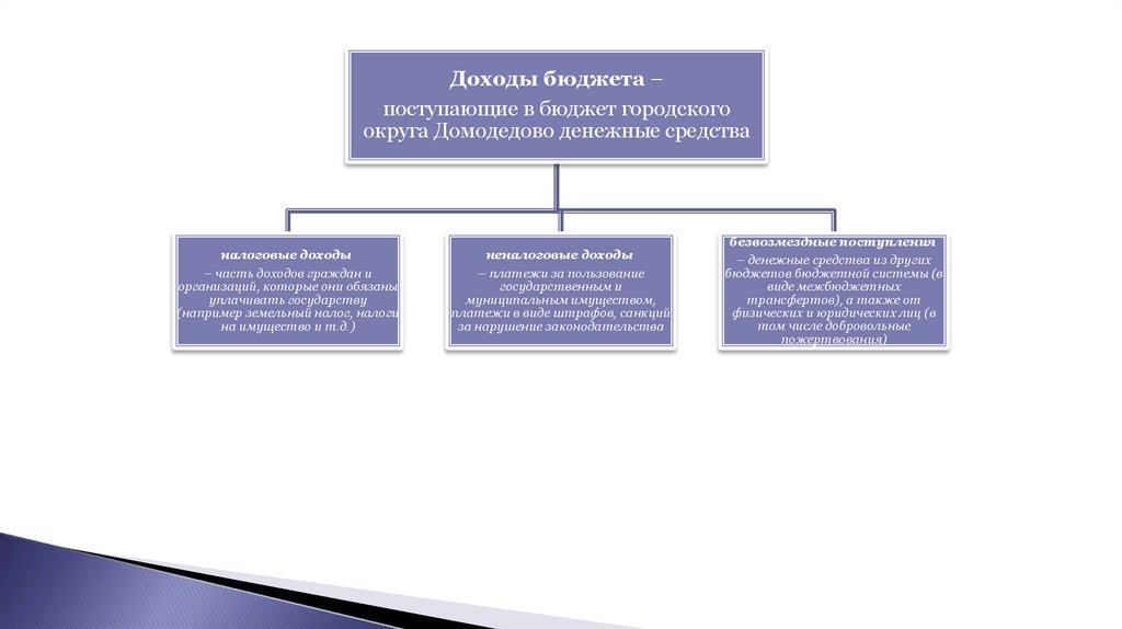 Доходы бюджета - поступающие в бюджет городского округа Домодедово денежные средства, за исключением средств, являющихся в соответствии с Бюджетным кодексом