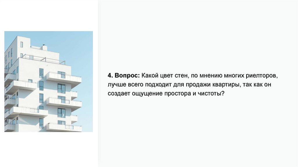 4. Вопрос: Какой цвет стен, по мнению многих риелторов,лучше всего подходит для продажи квартиры, так как он