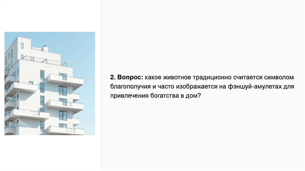 2. Вопрос: какое животное традиционно считается символомблагополучия и часто изображается на фэншуй-амулетах для