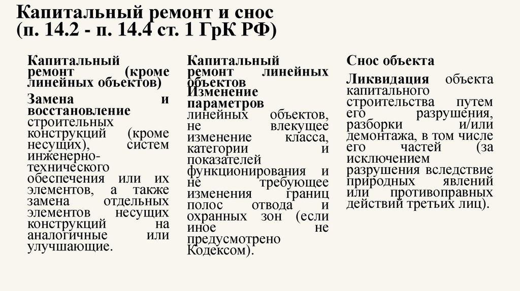 преобразования городской среды. • Капитальный ремонт и снос объектов
