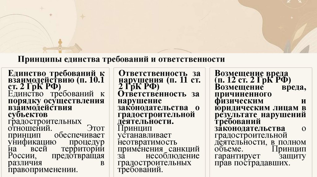 Принципы законодательства Сфера регулирования