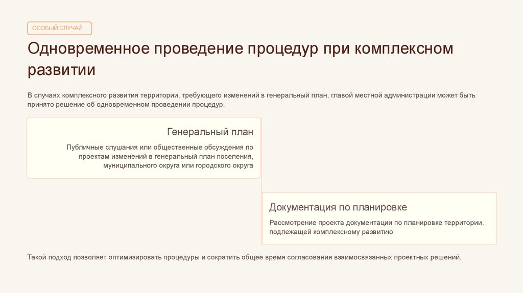 В случаях комплексного развития территории, требующего изменений в генеральный план, главой местной администрации может быть