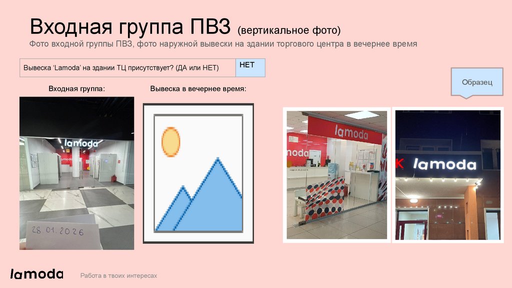 Вывеска ‘Lamoda’ на здании ТЦ присутствует? (ДА или НЕТ)