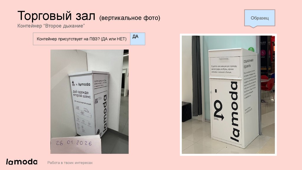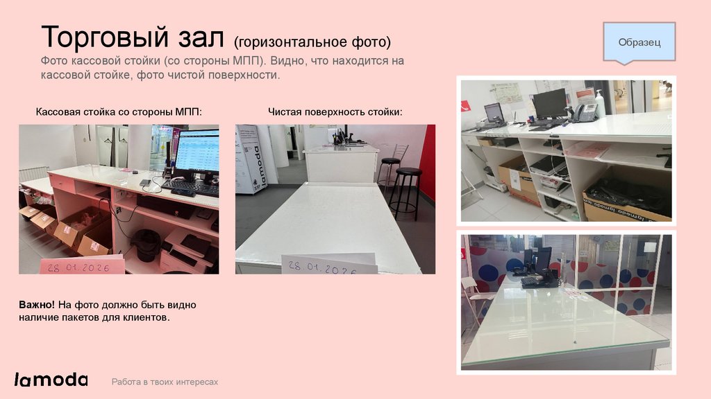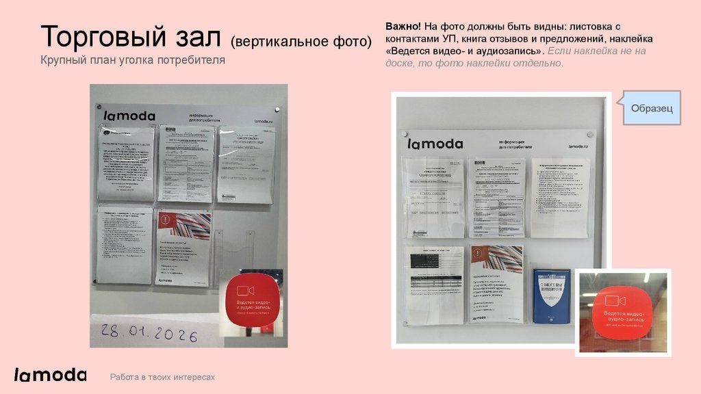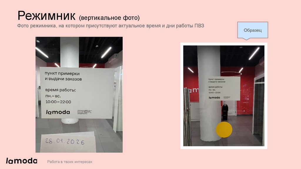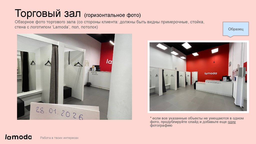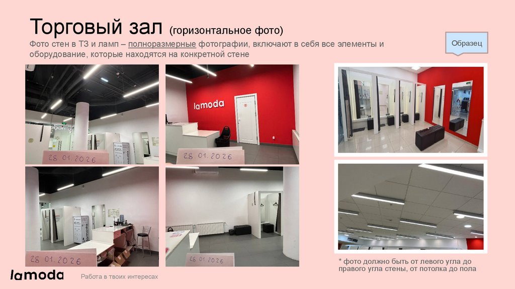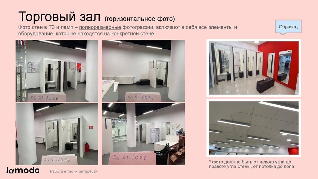 стена с логотипом ‘Lamoda’, пол, потолок)