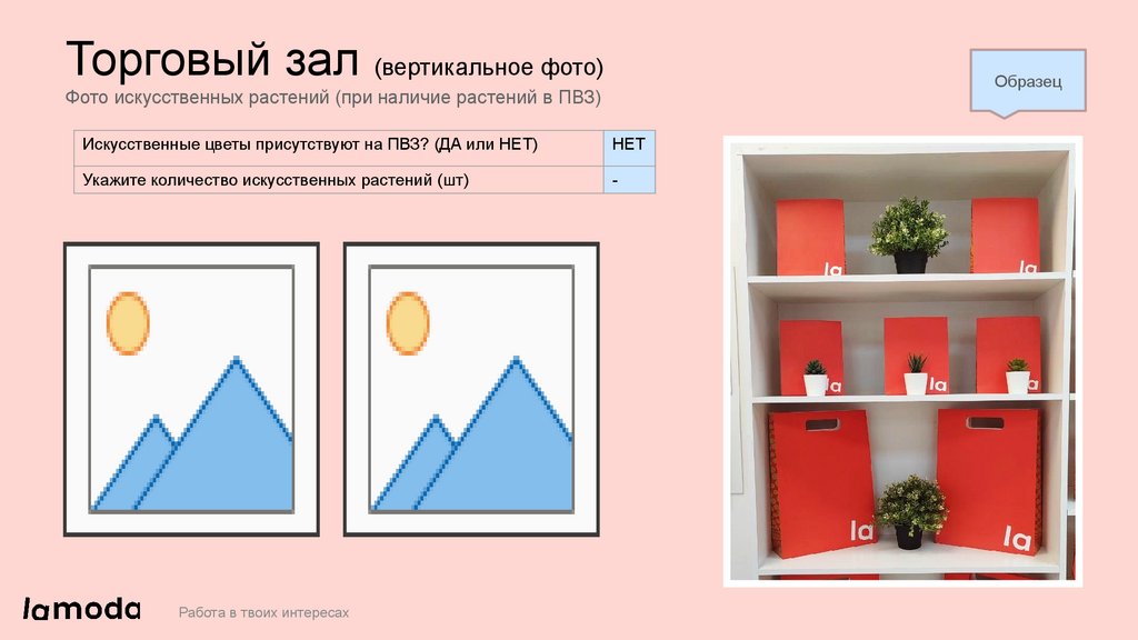 Фото искусственных растений (при наличие растений в ПВЗ)