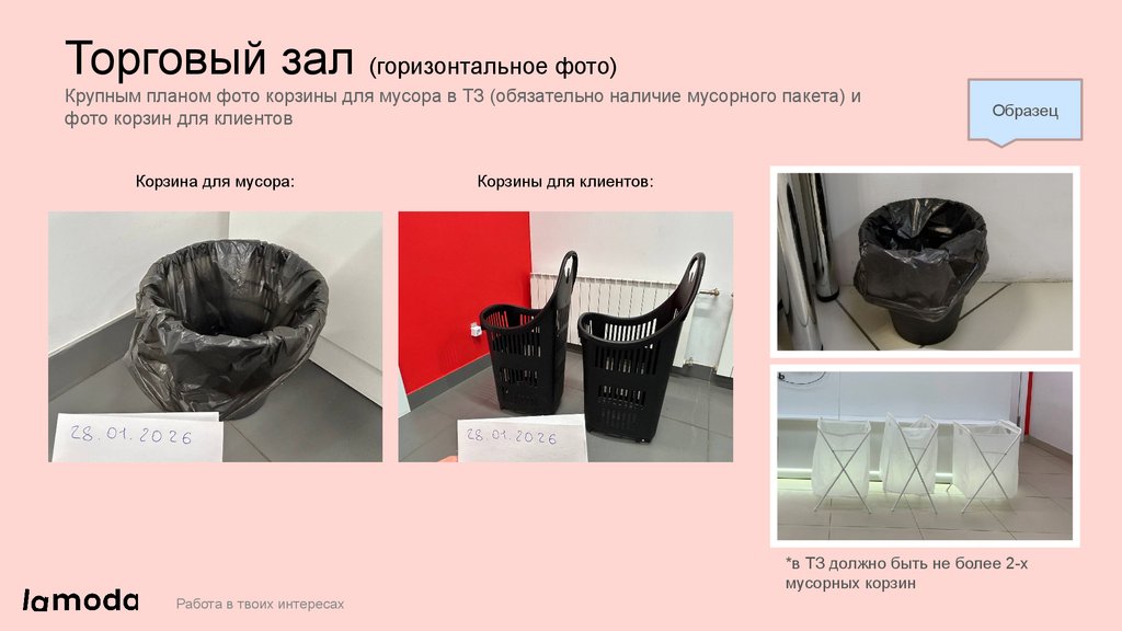 Торговый зал (горизонтальное фото)Крупным планом фото корзины для мусора в ТЗ (обязательно наличие мусорного пакета) и