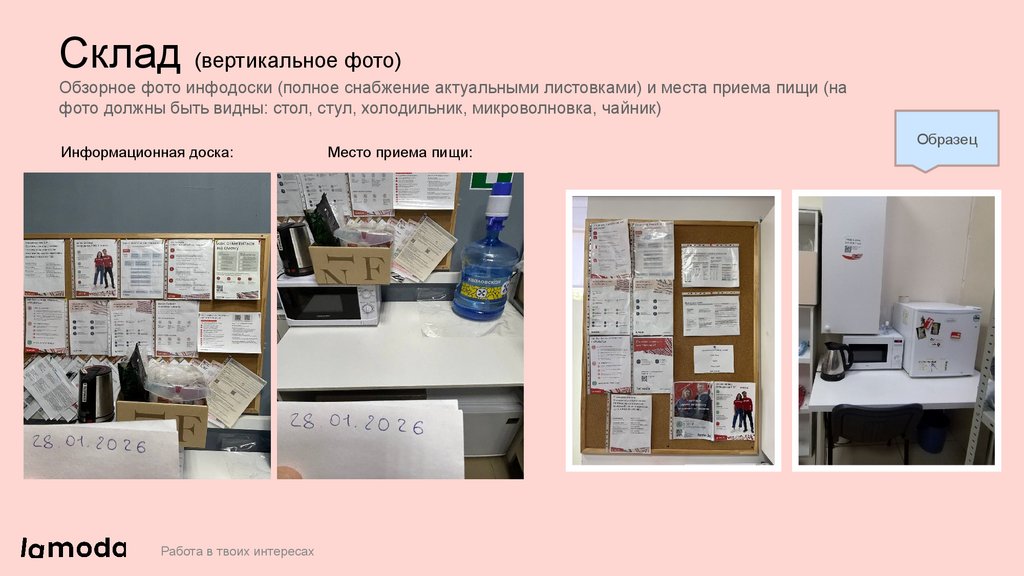 Склад (вертикальное фото)Обзорное фото инфодоски (полное снабжение актуальными листовками) и места приема пищи (на