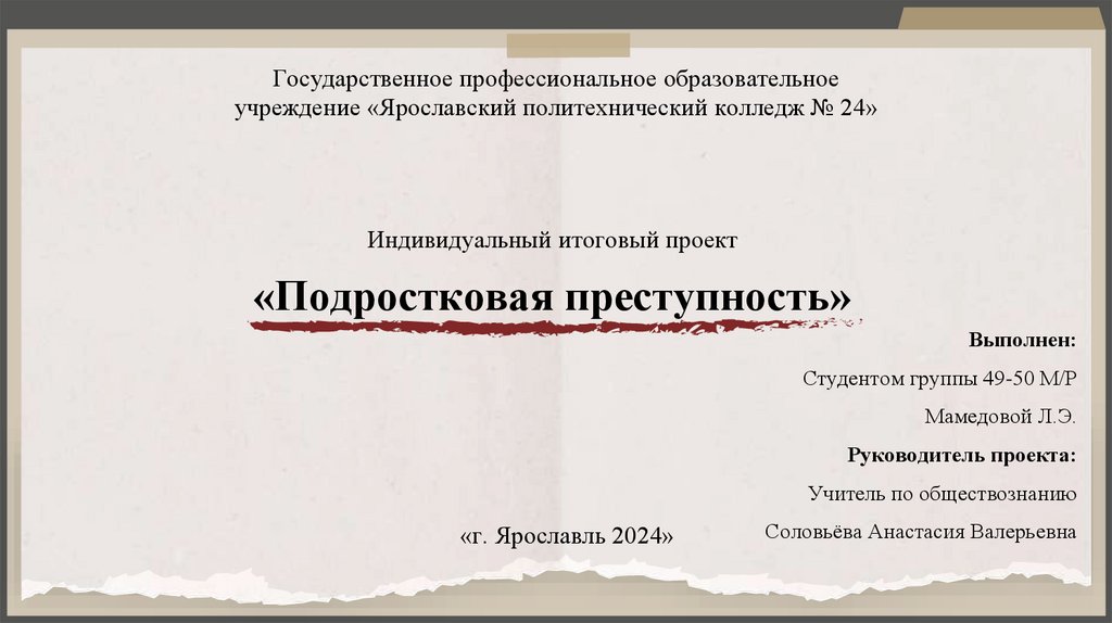 Государственное профессиональное образовательноеучреждение «Ярославский политехнический колледж № 24»