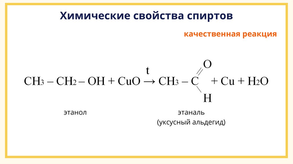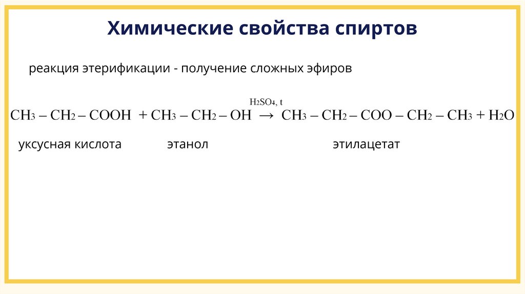 Химические свойства спиртовреакция этерификации - получение сложных эфиров