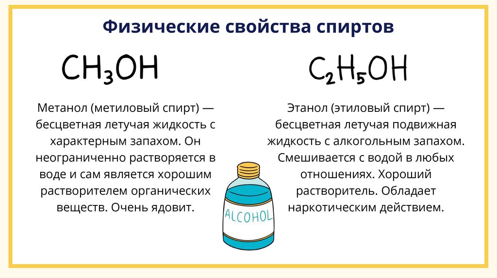 Физические свойства спиртовМетанол (метиловый спирт) —