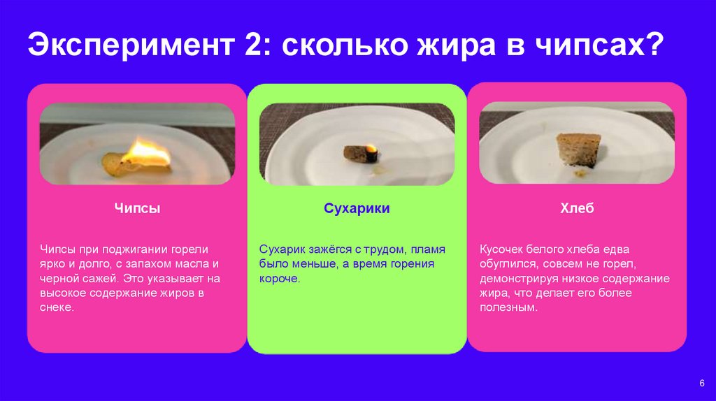 Эксперимент 2: сколько жира в чипсах?Чипсы