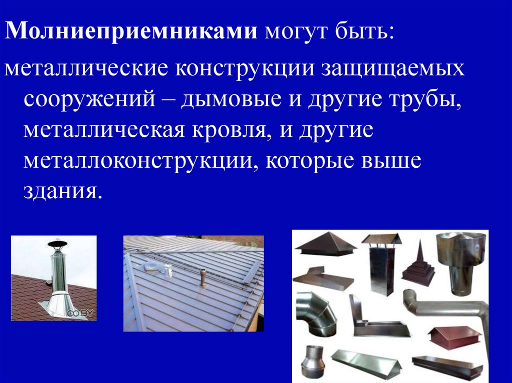 Молниеприемниками могут быть:металлические конструкции защищаемых