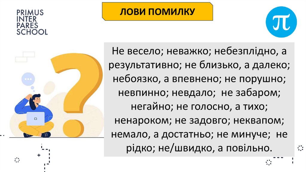 написання НЕ та НІ з прислівниками
