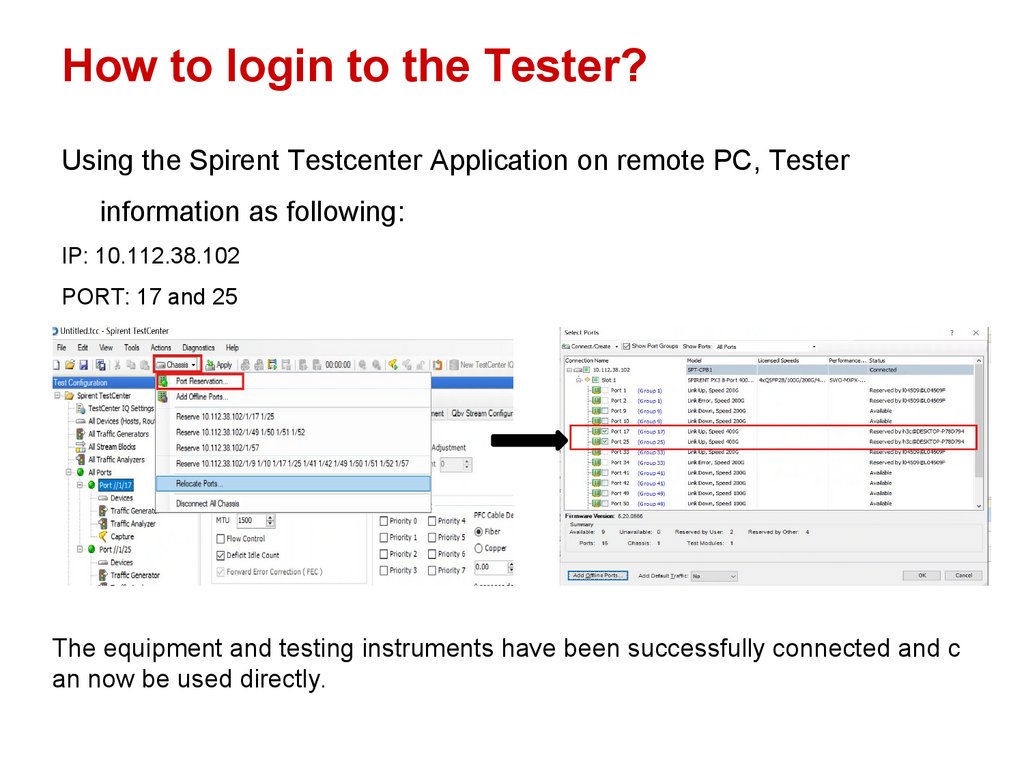 How to login to the Tester?Using the Spirent Testcenter Application on remote PC, Tester