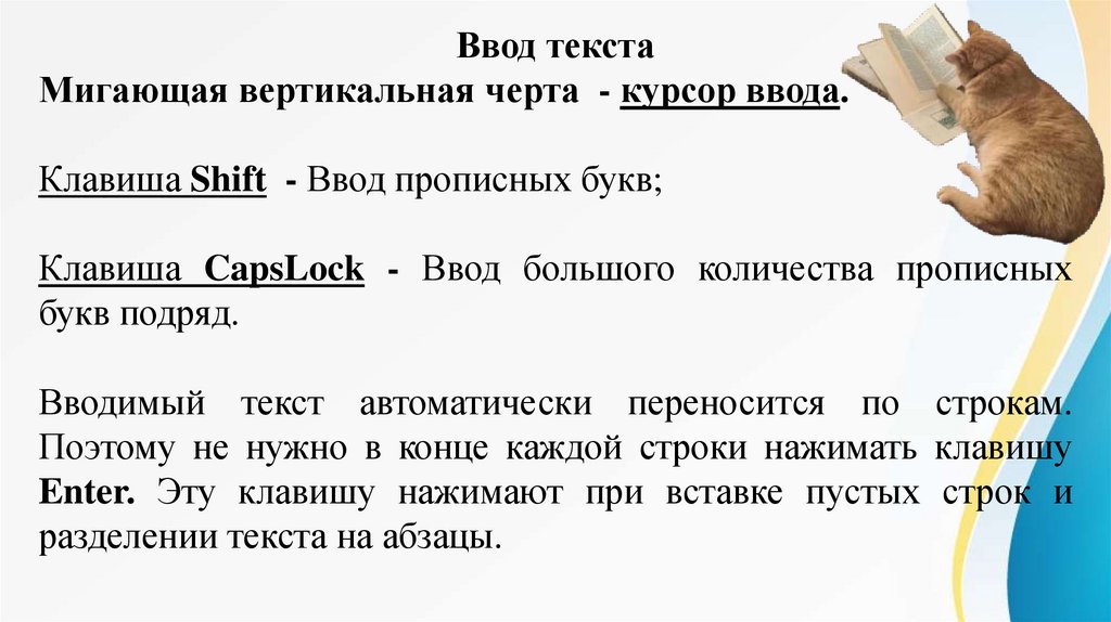 Ввод текстаМигающая вертикальная черта - курсор ввода.